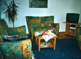 Für Kinder und Jugendliche haben wir eigene Räumlichkeiten, bestehend aus zwei Zimmern, einer Küche und einem kleinen Badezimmer. Das Zimmer für jüngere Kinder ist kindergartenähnlich, mit Puppenhaus etc. ausgestattet.